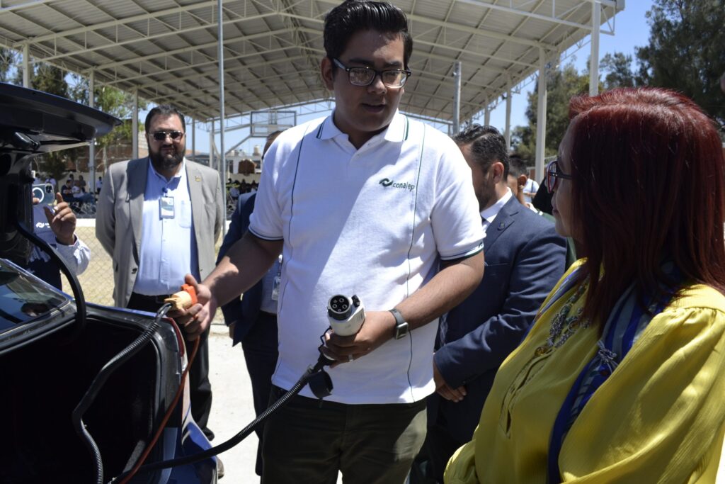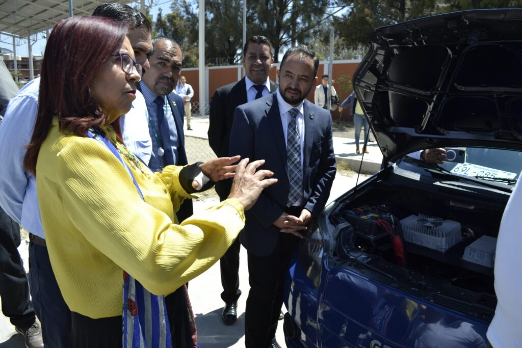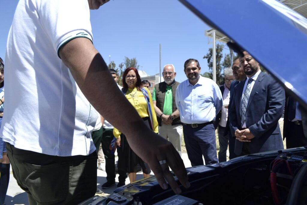 El Conalep de Moroleón, dio muestra del avance tecnológico al explicar y probar el funcionamiento de un automóvil eléctrico, donde fueron parte de su reconversión.