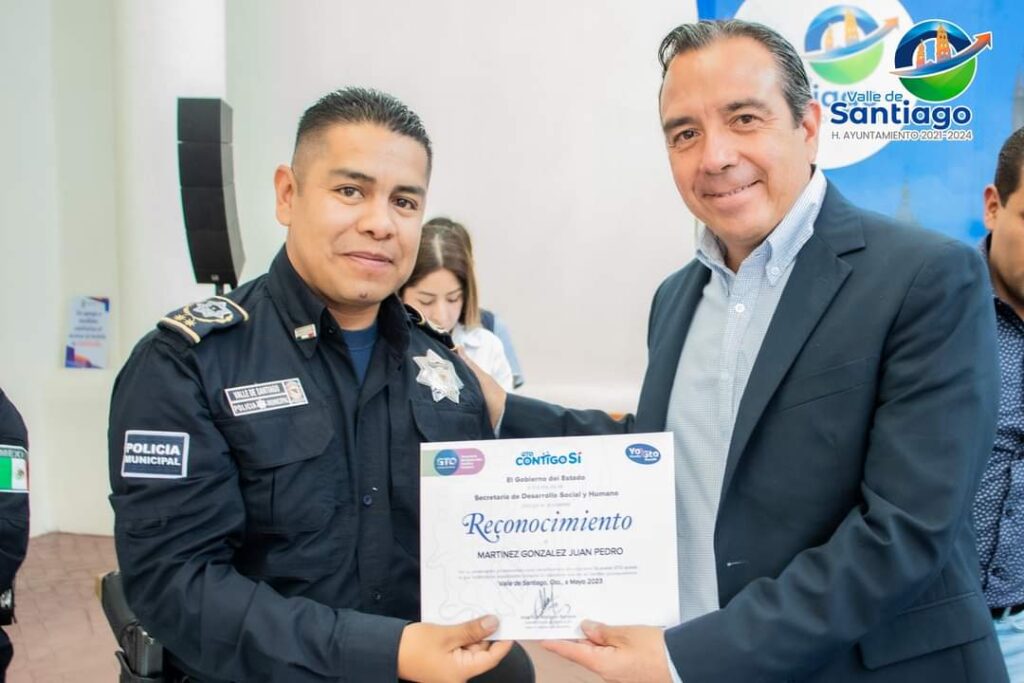 El alcalde Alejandro Alanís asistió a la ceremonia de graduación de 29 elementos de la Comisaría de Seguridad Pública, quienes concluyeron el curso «Yo puedo, Guanajuato Puede» impartido por la Secretaría de Desarrollo Social y Humano del Estado