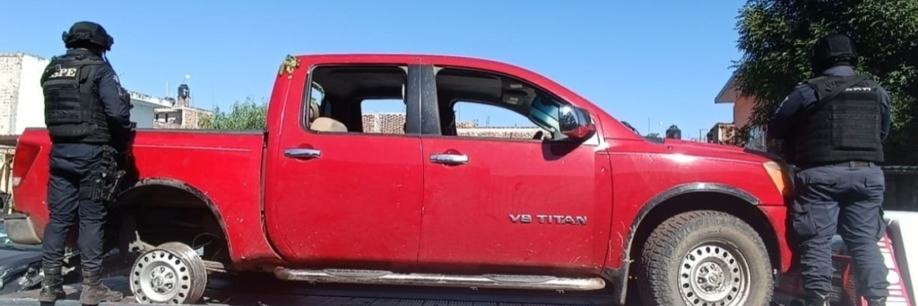 El hecho se derivó de los patrullajes implementados por efectivos de las diversas corporaciones de seguridad, cuando sobre el camino de terracería que conduce a la comunidad de Antigua Hacienda del Manzano, al norte del municipio, los efectivos tuvieron a la vista a tres sujetos a bordo de una camioneta que presentaba un neumático ponchado.