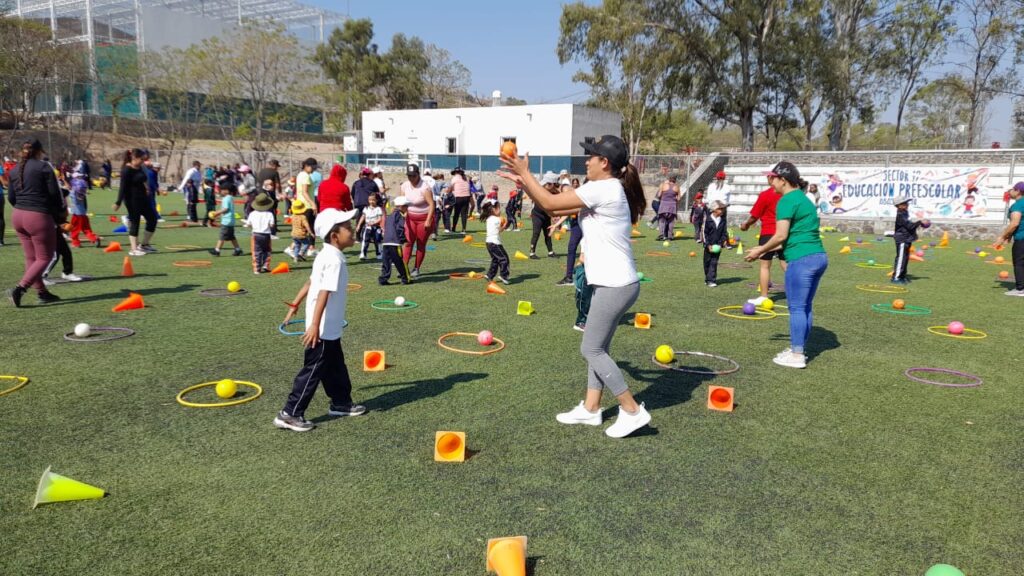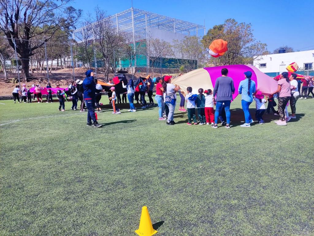 Una vez que las y los pequeños se dieron el tiempo de conectarse con sus mamás y sus papás por medio de la música y el baile, pasaron a recorrer los circuitos preparados por los profesores de Educación Física.