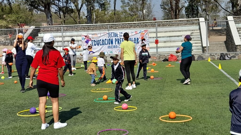 Abasolo, Gto.- La Delegación regional VI, a través de la Zona 20 de Educación Física y el Sector 19 de Preescolar, organizaron el evento “Convivo y Aprendo”, el cual reunió a 35 escuelas, en un día de juegos y aprendizaje en el que pudieron compartir niñas, niños junto con sus madres y padres de familia.