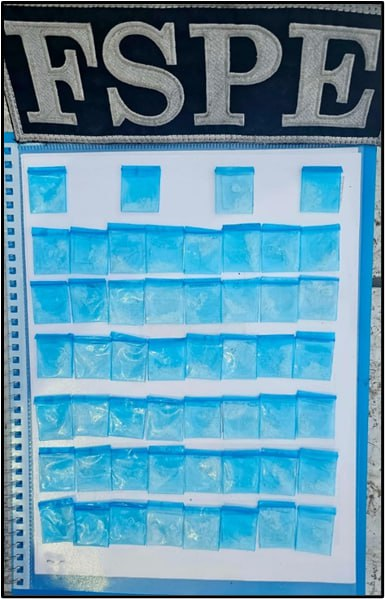 Luego de activar los protocolos de actuación pertinentes, los elementos policiales le aseguraron a esta persona que dijo llamarse Edgar “N” de 32 años de edad, 52 bolsitas tipo ziploc que contenían una sustancia granulada y trasparente al parecer cristal.