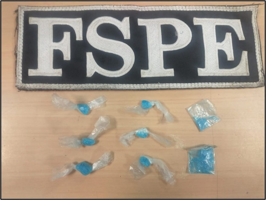 Luego de indicarle el alto, se le aplicó una revisión preventiva y le fueron encontradas a Luis “N” de 22 años de edad, ocho envoltorios conteniendo una sustancia granulada de color azul con las características del cristal.