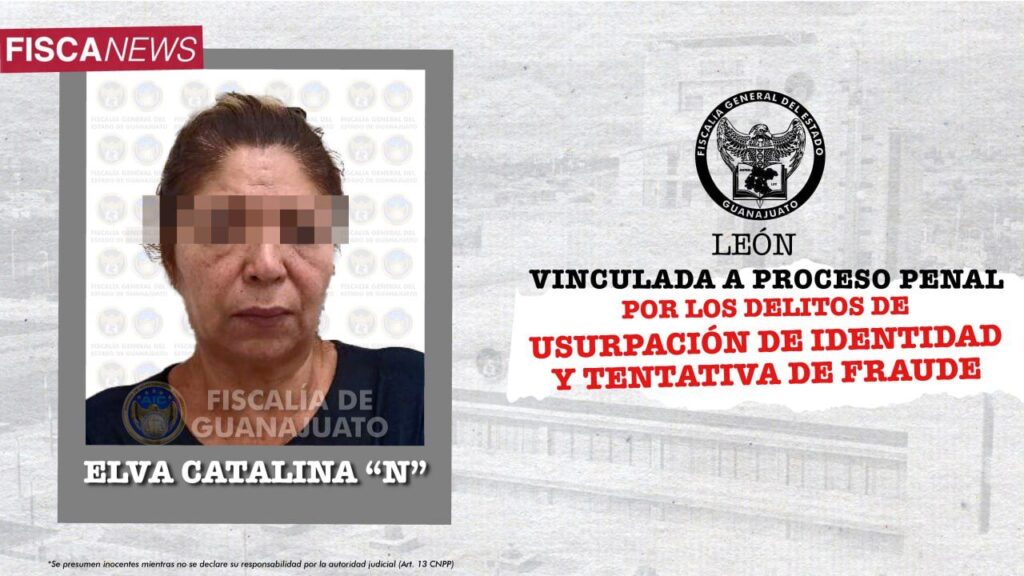 León, Gto.- 03.- La Fiscalía de Guanajuato inició una carpeta de investigación en contra de ELVA CATALINA “N”, quien intentó abrir una cuenta bancaria con datos falsos. La mujer fue vinculada a proceso penal por los delitos de usurpación de identidad y tentativa de fraude.