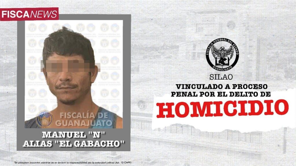 Silao, Gto.- Un Agente del Ministerio Público obtuvo vinculación a proceso penal en contra de MANUEL “N” alias “EL Gabacho”, acusado de asesinar a José Martín “N”, en la comunidad del Salitrillo.