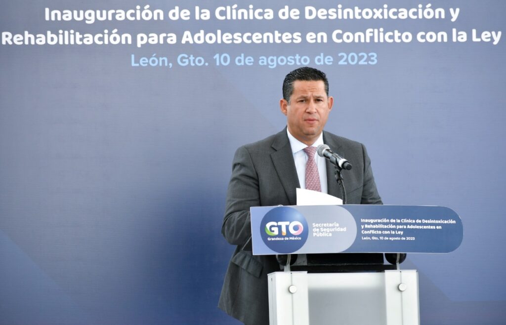 León, Gto.– El Gobernador del Estado Diego Sinhue Rodríguez Vallejo, en compañía del Secretario deSeguridad Pública Alvar Cabeza de Vaca Appendini, inauguró la Clínica de Desintoxicación y Rehabilitación para la atención de los jóvenes del Centro de Internamiento Especializado para Adolescentes.
