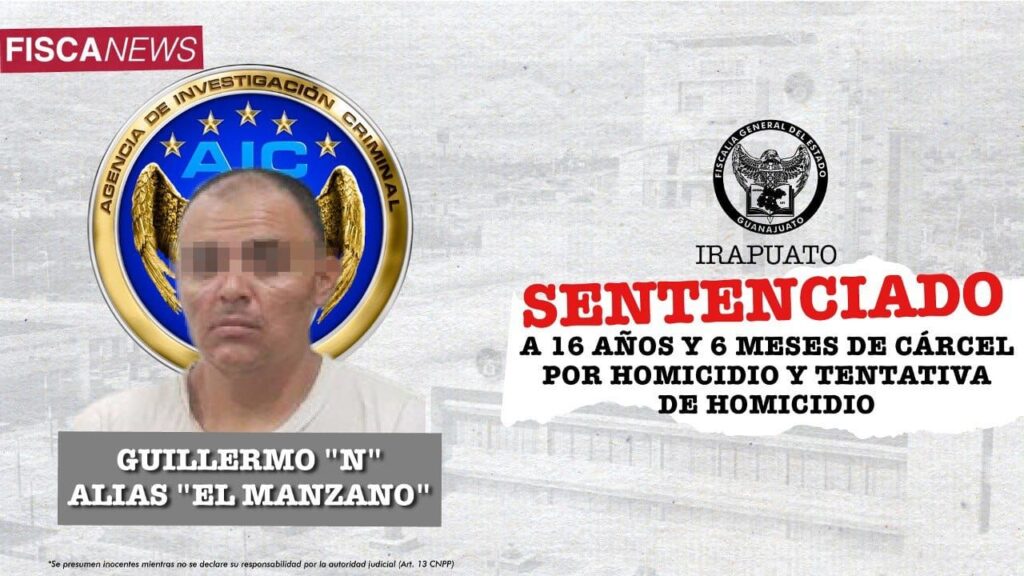 “El Manzano” fue sentenciado a 16 años con seis meses, 11 años por el homicidio y 5 años con seis meses por la tentativa de homicidio, además de las sanciones de tipo económico que consisten en la reparación del daño y pago de gastos funerarios, entre otros.