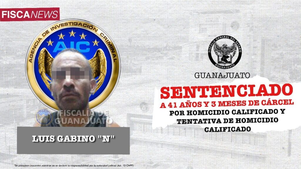 Guanajuato, Gto.- 02 de septiembre de 2023.- Con disparos de arma de fuego, un hombre asesinó a una mujer y lesionó a un menor de edad en la capital del estado; por lo que ha sido encontrado culpable y sentenciado a 41 años y 3 meses de cárcel. Un Juez dictó la condena sustentado en las pruebas obtenidas durante la investigación de la Fiscalía de Guanajuato para esclarecer el crimen.
