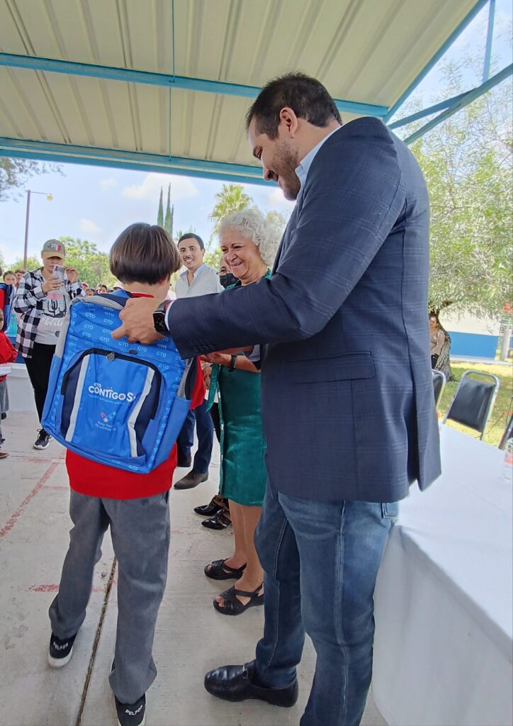 Manuel Doblado, Gto. 04 de septiembre de 2023.- Con el propósito de ayudar a la economía familiar y de incentivar a las niñas y niños de primaria, la Secretaría de Educación de Guanajuato, a través de la Delegación regional VI, realizó la entrega de Mochilas y Útiles Escolares a más de 90 estudiantes de la primaria Aquiles Serdán en Santa María de Bolaños.