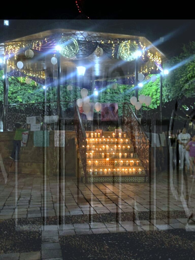 Poco más de 100 personas entre adolescentes, jóvenes y adultos se reunieron en el jardín principal, y exigieron mayor seguridad, colocaron velas encendidas por los que ellos llamaron “las personas que no terminaron con nosotros este año”.