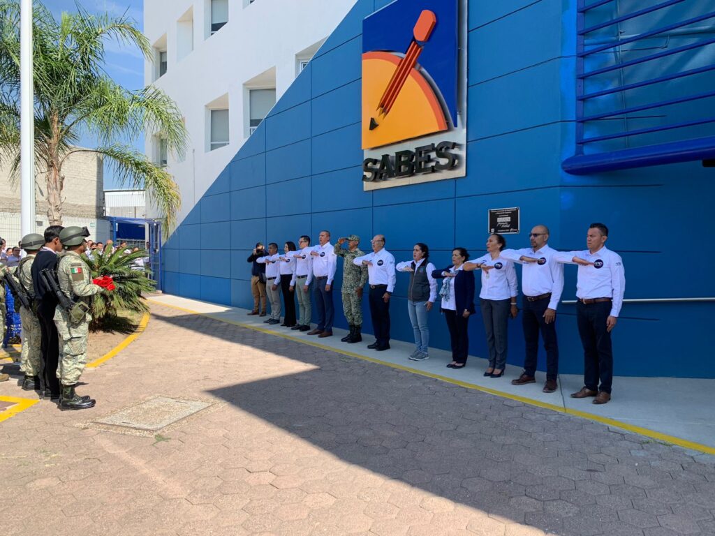 Personal Militar perteneciente al 8/o. Regimiento Blindado de reconocimiento unidad adscrita a la 16/a. Zona Militar, participo en el Izamiento de Bandera realizado con alumnos del Sistema Avanzado Bachillerato y Educación Superior (SABES), del Mpio. de León, Gto.
