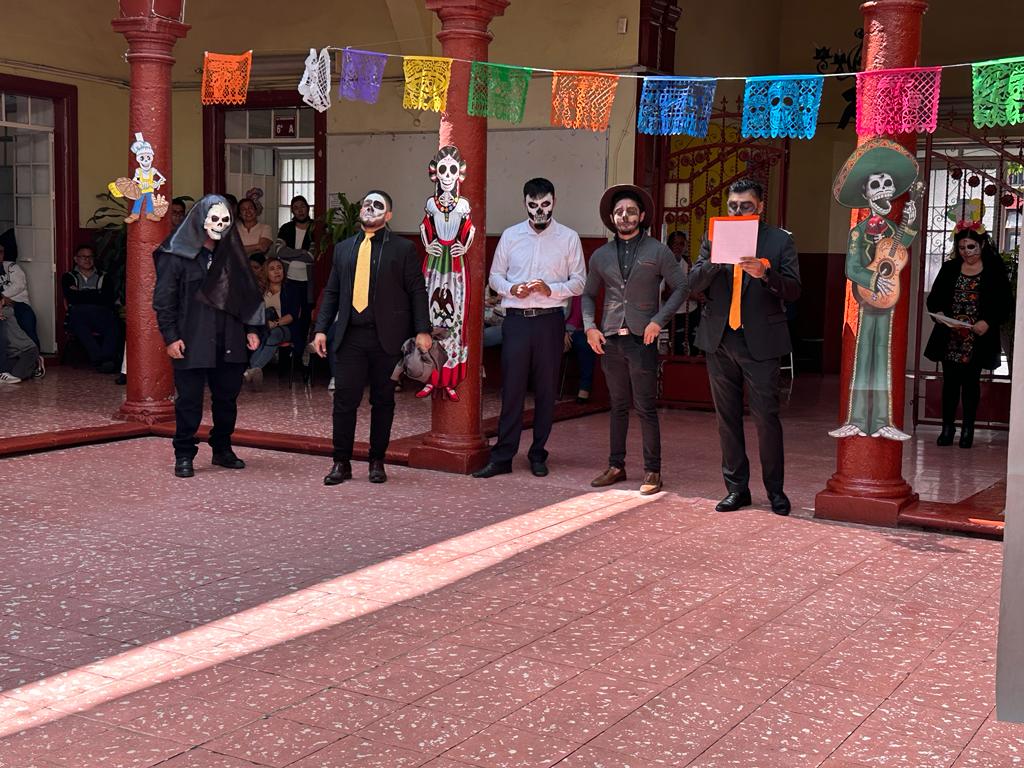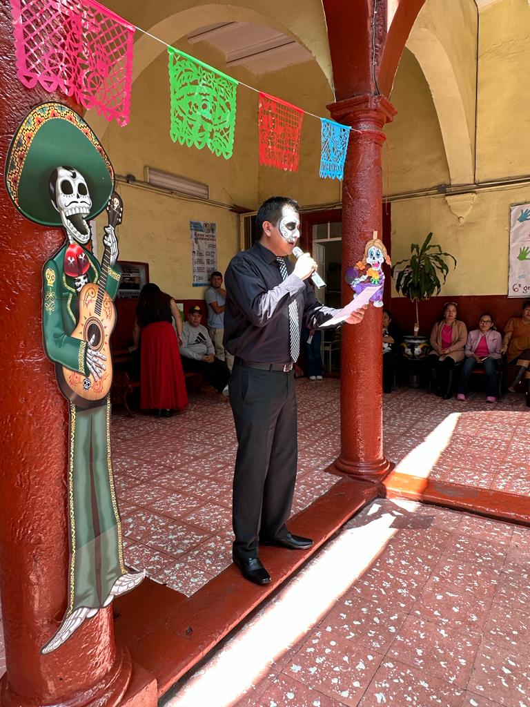 Como parte del programa, se leyeron las infaltables calaveritas, elaboradas por personal de las primarias La Corregidora, Niños Héroes, Miguel Hidalgo y Francisco I. Madero, en las que no pudo faltar ese toque de picardía que se imprime de manera chusca y divertida en cada verso.