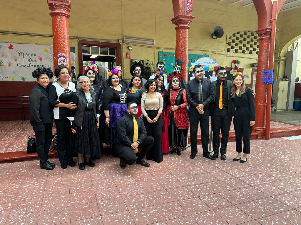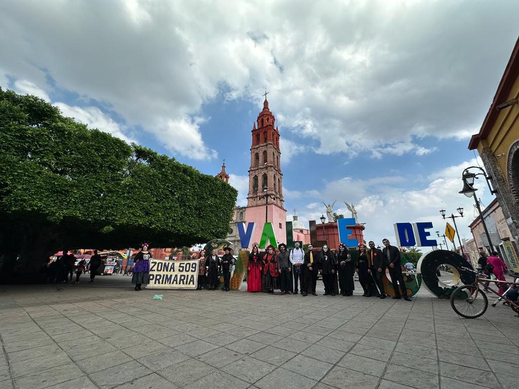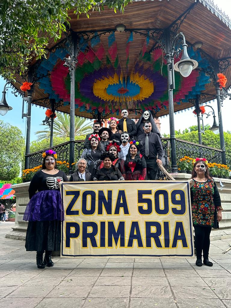 Valle de Santiago, Gto. 01 de noviembre 2023.- Con el objetivo de fomentar nuestras tradiciones, la Zona 509 de Primarias preparó un colorido programa con motivo del Día de Muertos, donde docentes caracterizados de catrinas y catrines dieron muestra del gran arraigo cultural que representa estas fechas consideradas de las más importantes en nuestro México.