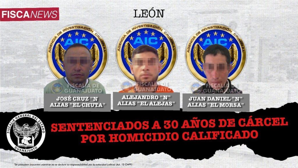Posteriormente, los presuntos responsables fueron detenidos y vinculados a proceso penal por el homicidio. Al llegar a la etapa de juicio oral, el Ministerio Público sustentó las acusaciones con pruebas científicas, por lo que ALEJANDRO “N” alias “El Alejas”, JUAN DANIEL “N” de mote “El Morsa” y JOSÉ CRUZ “N”, también conocido como “El Chuta”, fueron notificados de la condena de 30 años que tendrán que compurgar en la cárcel.