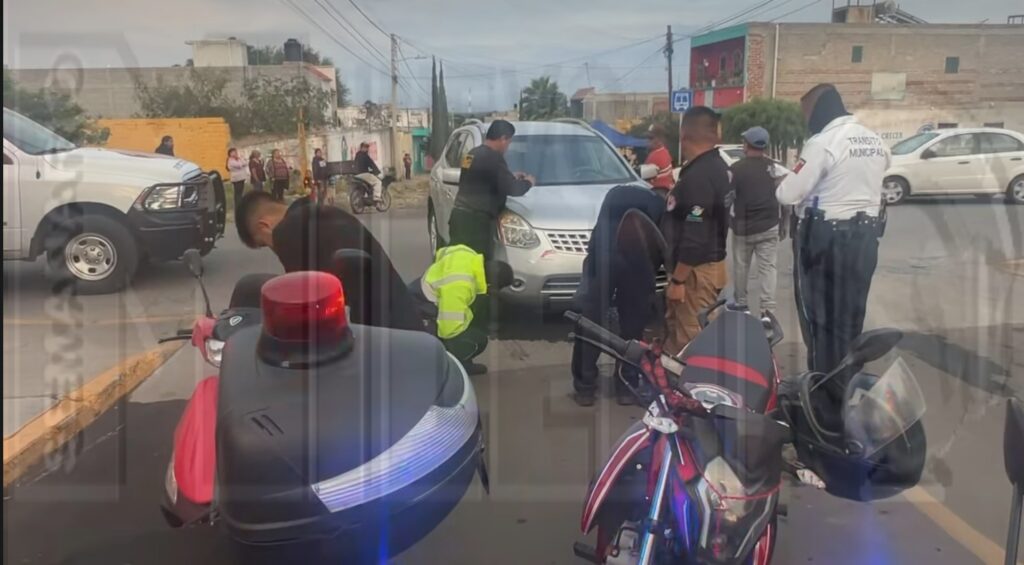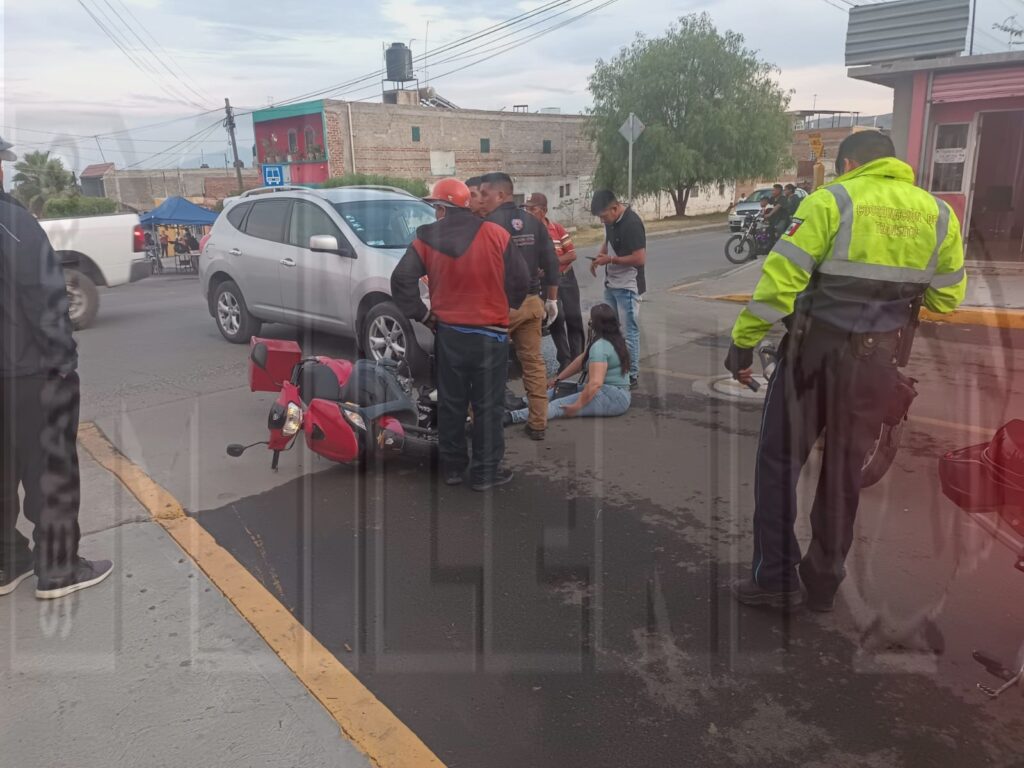 En el accidenté se vieron involucrados una automóvil y una motocicleta, resultando con la peor parte una femenina que viajaba en la moto, quien se identificó como Roció González, de aproximadamente 42 años de edad, con domicilio en la calle Colon de la colonia la Loma, la cual fue trasladada de emergencia a recibir atención médica a la clínica Santa Martha, ya que presentó posible fractura en la extremidad inferior izquierda y laceraciones en extremidades superiores.