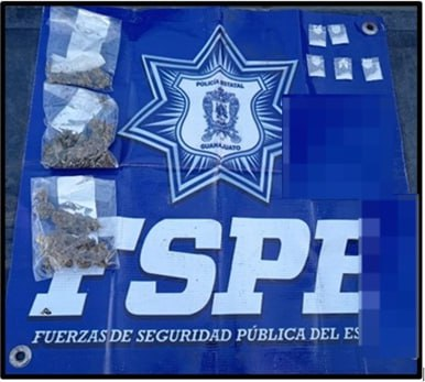Guanajuato, Gto., 21 de noviembre de 2023.- Derivado de labores de patrullaje y vigilancia, elementos de las Fuerzas de Seguridad Pública del Estado (FSPE) lograron asegurar en los municipios de San José Iturbide, Valle de Santiago y Silao, más de 50 dosis de la droga con las características del cristal y la mariguana. Tres personas fueron detenidas en estas acciones.