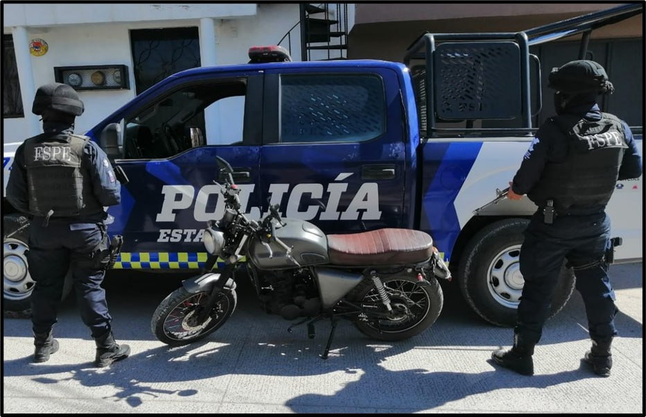 Luego de que los policías estatales consultaron los datos de la unidad a través del Sistema Estatal C5i, arrojó que contaba con reporte de robo. Se trata de una motocicleta marca Italika, color negro, sin tablillas de circulación.