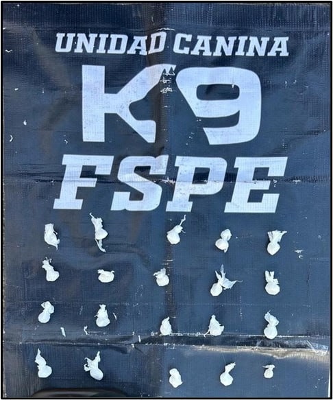 Metros adelante le dieron alcance a esta persona y tras aplicarle una revisión preventiva a cargo del elemento canino llamado “Bomber”, detectó la presencia de sustancias ilícitas, por lo que alertó a su entrenador.