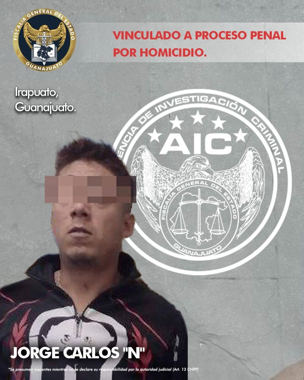 Irapuato, Gto. 14 de marzo de 2024.- Fue detenido y vinculado a proceso penal, JORGE CARLOS “N”, acusado de haber asesinado a un hombre en Irapuato.