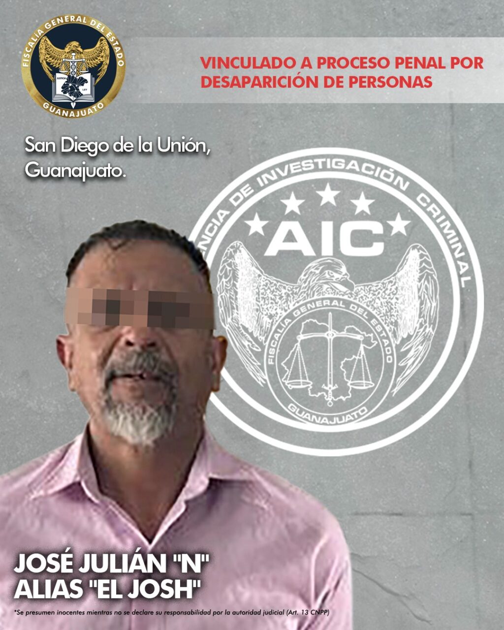 Por las pruebas que presentó el Ministerio Público al Juez, JOSÉ JULIÁN fue vinculado a proceso penal por el delito de desaparición cometida por particulares, con prisión preventiva, mientras se amplía la investigación en su contra.