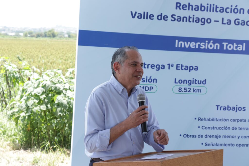Lo anterior fue señalado por Tarcisio Rodríguez Martínez, titular de la Secretaría de Infraestructura, Conectividad y Movilidad (SICOM), durante el evento mediante el cual se hizo la entrega de la 1ª. etapa y el arranque de la 2ª. etapa de la rehabilitación del camino Valle de Santiago – La Gachupina – El Pitahayo, obra en la que se mejoran 17.8 kilómetros de esa vialidad, para lo cual se canalizan 74.2 millones de pesos de recursos estatales.