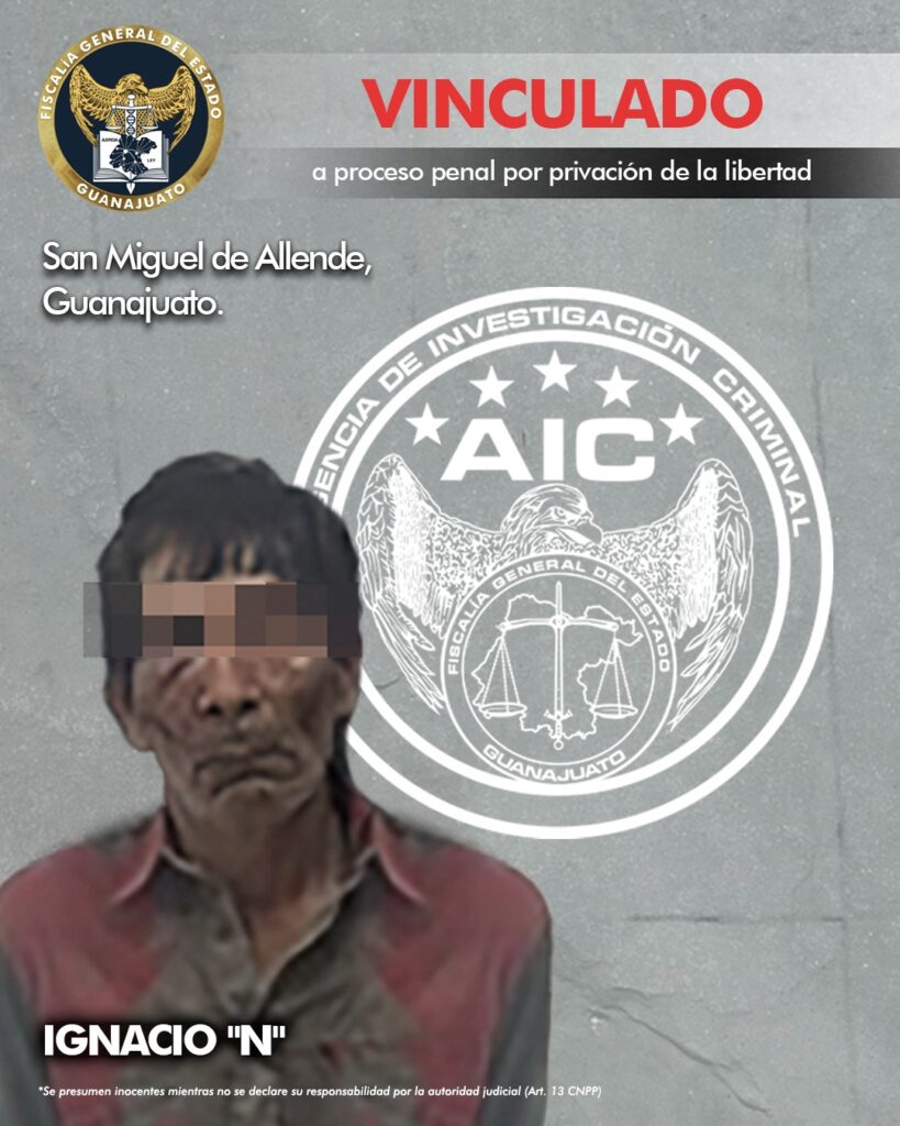 San Miguel de Allende, Gto. 28 de agosto de 2024.- La Fiscalía de Guanajuato logró que IGNACIO “N” de 62 años de edad fuera vinculado a proceso penal por su presunta responsabilidad en la privación de la libertad de un niño de 6 años, en el municipio de San Miguel de Allende.