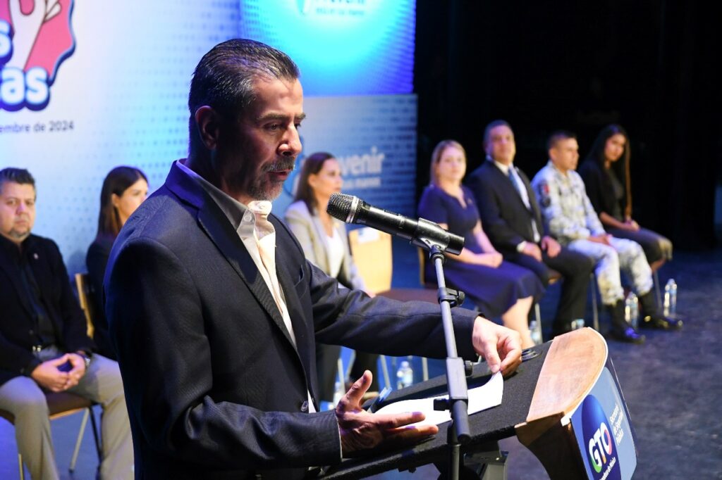 En su mensaje, el Secretario Alvar Cabeza de Vaca subrayó que, en el año 2018, el Gobierno del Estado de Guanajuato se dio a la tarea de tener la primera Ley Estatal de Prevención Social de la Violencia y la Delincuencia, donde se contempla de manera estructurada y organizada la forma de hacer la prevención.