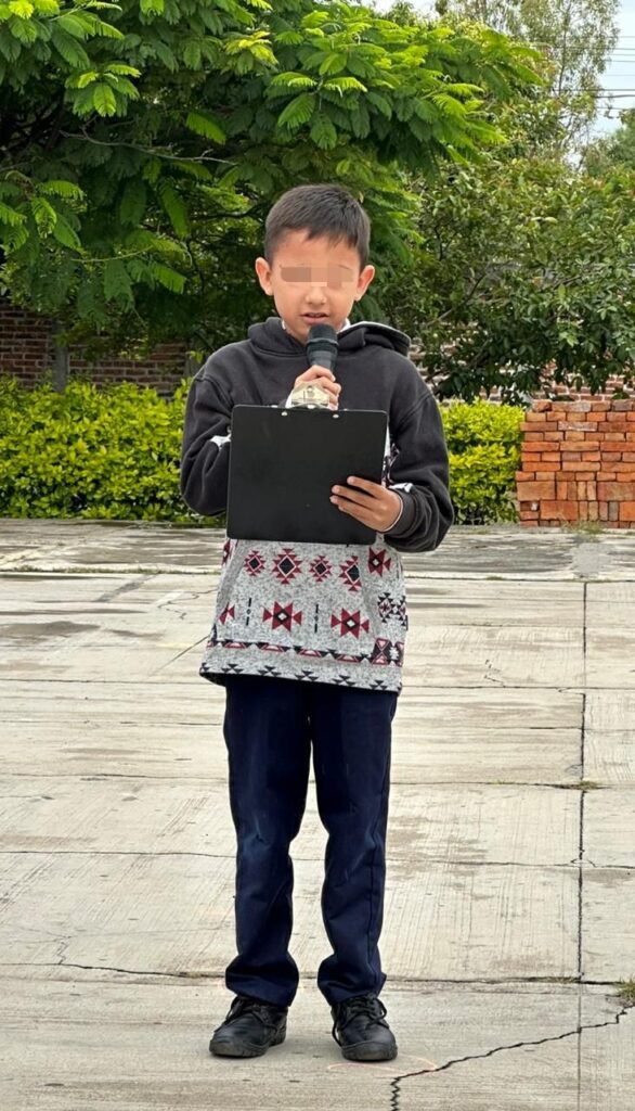 Posteriormente, el estudiante de tercer grado José Ángel ofreció un breve discurso sobre la magia que los libros pueden brindar a quienes los leen, resaltando la importancia de la lectura en el desarrollo personal y académico.