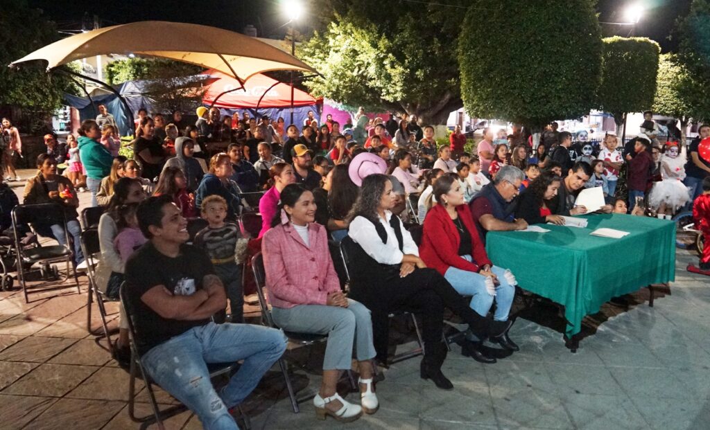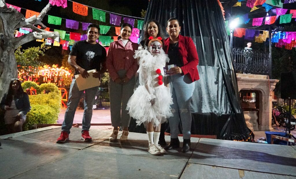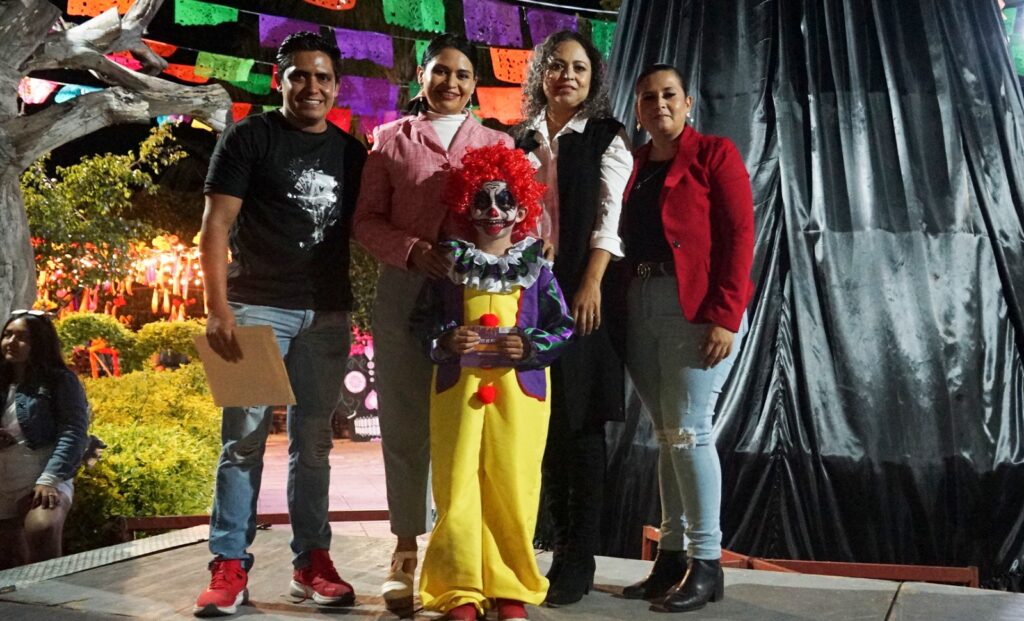 Gabriela Santa Cruz Rivera, Eder Guillermo Vargas Arriaga, Gustavo Núñez Andrade integrantes del jurado calificador que dieron como ganadores del 3er lugar a Emiliano Mejía Varela con su disfraz del hombre invisible, en 2do lugar a Kenia Jimena Chacón Vargas con su disfraz de payaso y como 1er lugar Mateo Ramírez Chávez con su disfraz del payaso Eso.