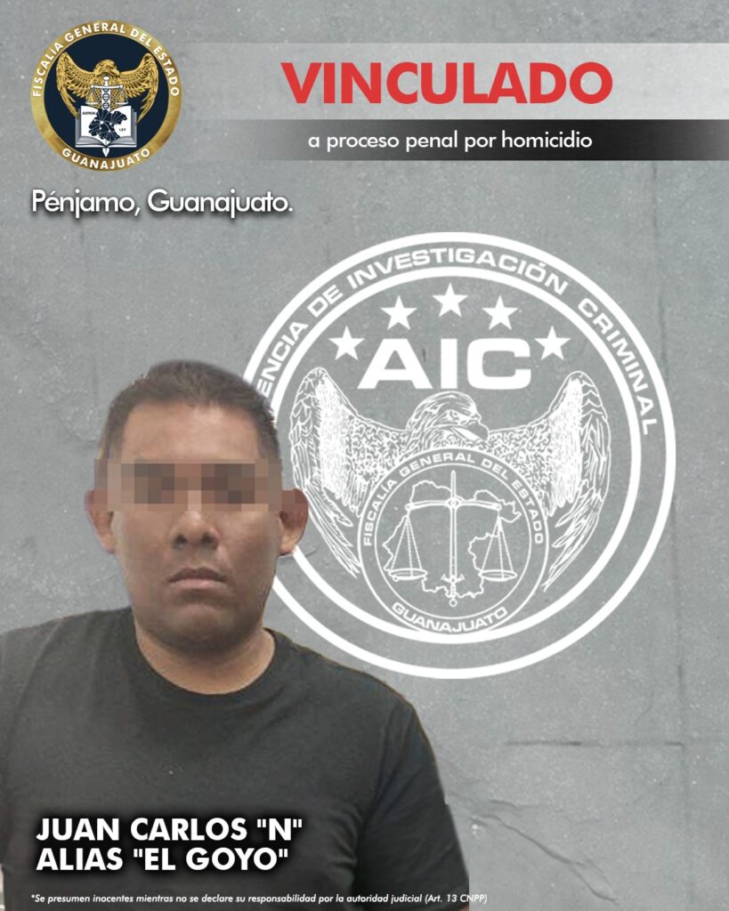 Pénjamo, Gto. 10 de diciembre de 2024.- “El Goyo” es acusado de privar de la vida a un interno en un anexo del municipio de Pénjamo. El presunto homicida fue capturado por Agentes de Investigación Criminal y vinculado a proceso penal.