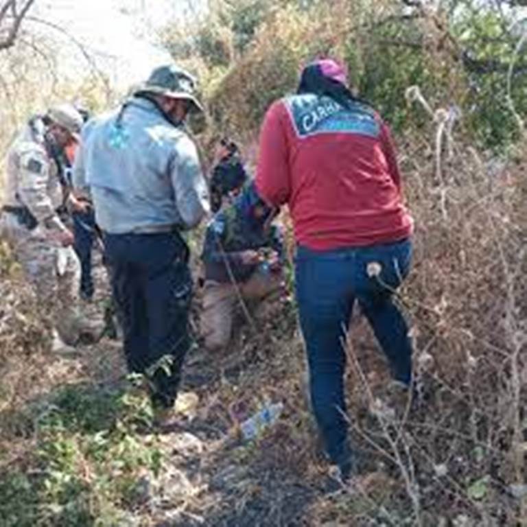 Sobre zona cerril, en la colonia Malpais, se logra la localización de cuerpo humano en descomposición con vestimentas, playera negra manga larga, pantalón de mezclilla, tenis color azul con franjas blancas y fragmentos óseos de posible origen humano.