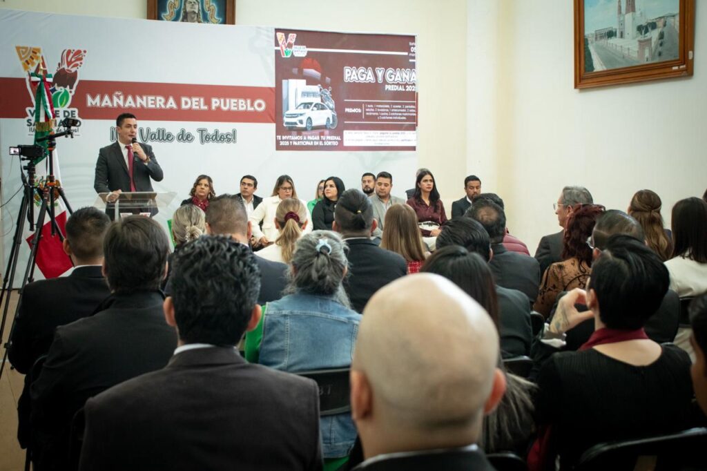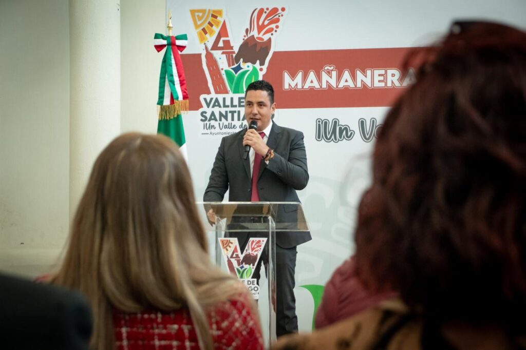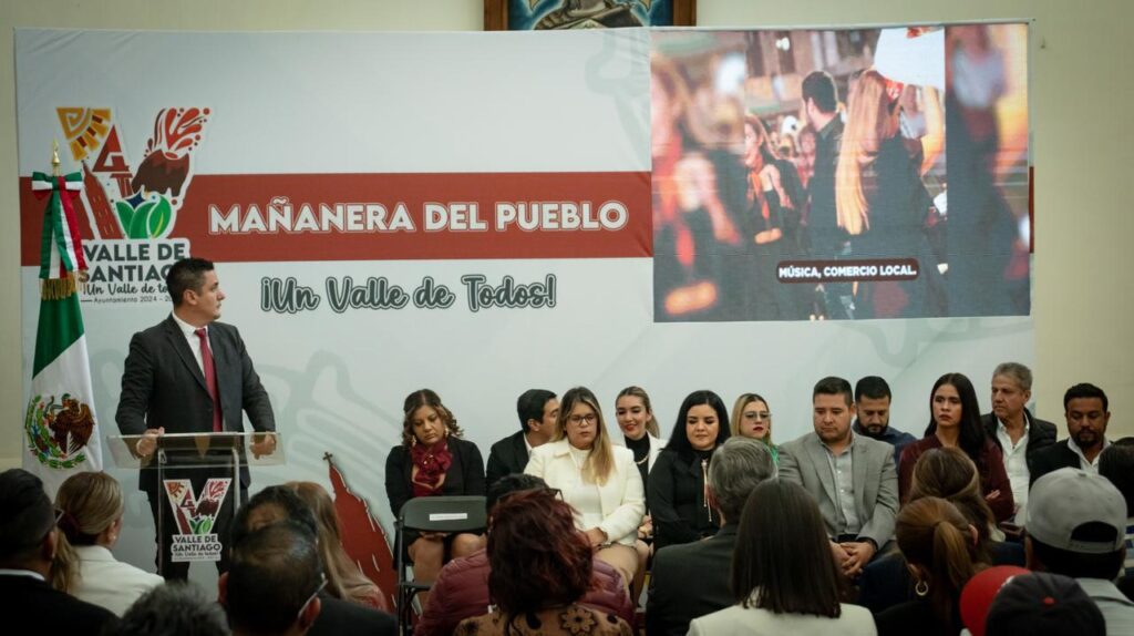 Valle de Santiago, Gto., a 10 de febrero 2025.- El Presidente Municipal, Israel Mosqueda Gasca llevó a cabo la primera Mañanera del Pueblo donde informó las actividades de los primeros 100 días de Gobierno en su administración.