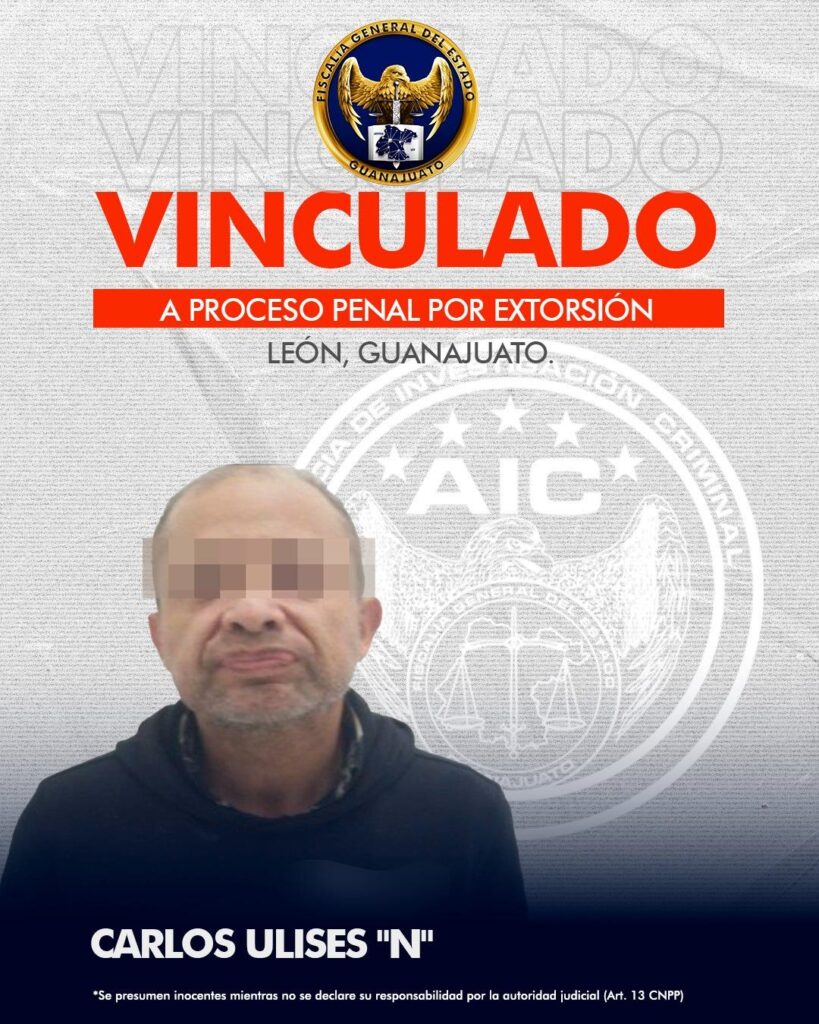 La Fiscalía General del Estado de Guanajuato logró que un Juez vinculara a proceso penal a CARLOS ULISES “N”, acusado de extorsionar a un comerciante en la ciudad de León. El imputado fue detenido en flagrancia por elementos de la Policía Preventiva mientras exigía dinero a la víctima como parte de una “cuota”, utilizando amenazas e intimidación para obtener el pago. Durante la audiencia, el Agente del Ministerio Público presentó pruebas que demostraron el modus operandi del detenido, logrando que fuera vinculado a proceso penal. CARLOS ULISES “N” permanecerá en prisión preventiva mientras se desarrolla el proceso penal en su contra.