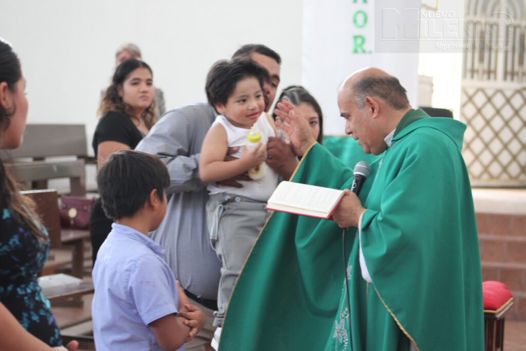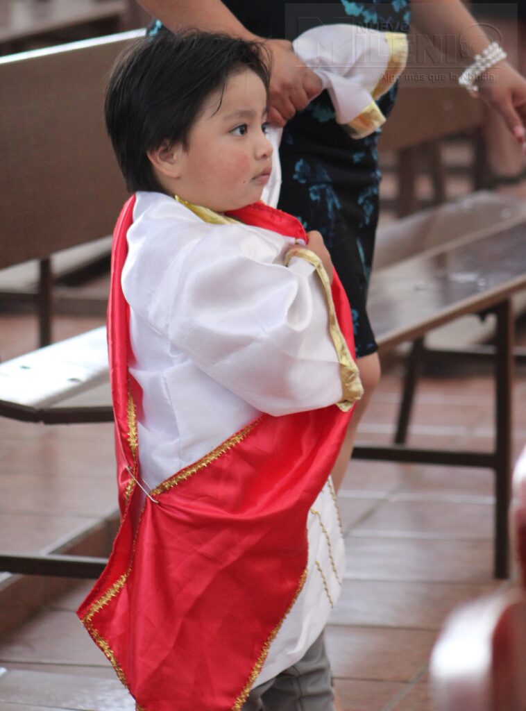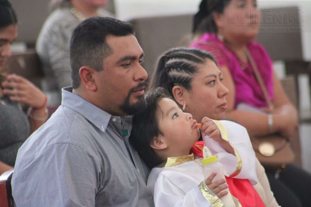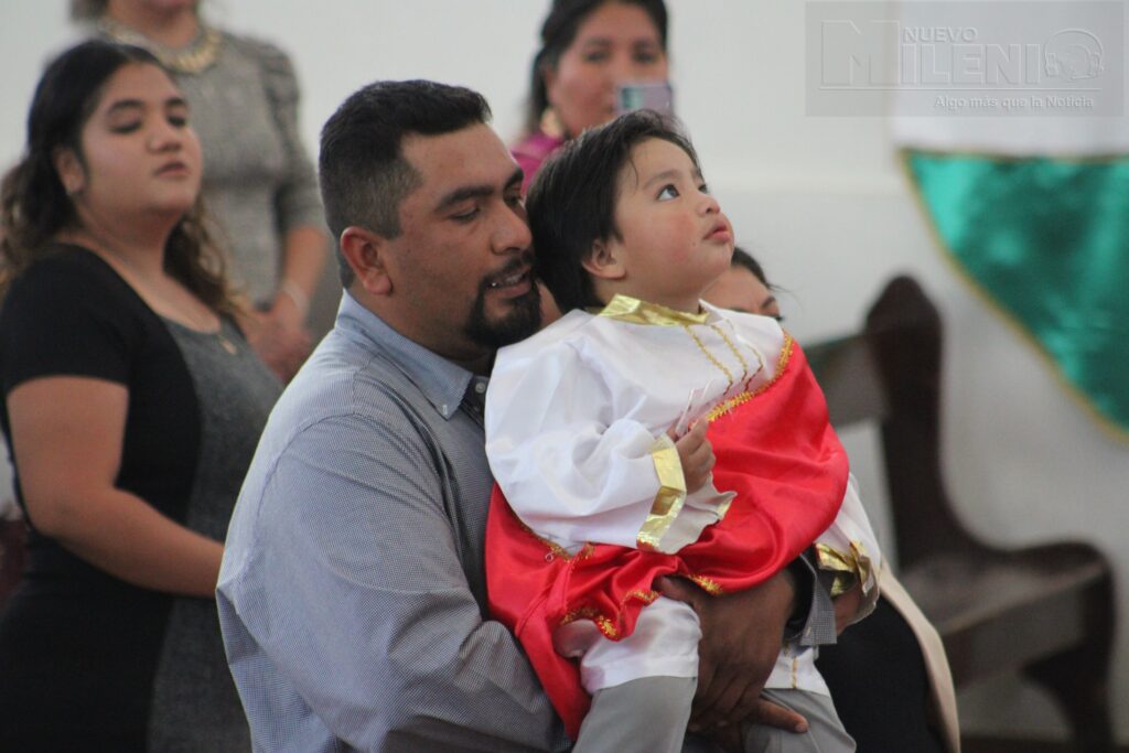 La ceremonia se llevó a cabo el pasado domingo 16 de febrero en el templo de la Virgen de la Asunción en la colonia la Loma, donde el pequeño llegó acompañado de sus padres y padrinos.