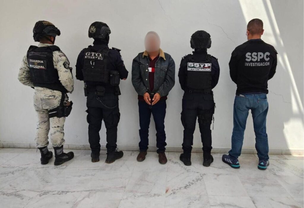 - Su detención fue resultado de cateos autorizados por el juez de Distrito Especializado en el Sistema Penal Acusatorio en Guanajuato y cumplimentado tras labores de inteligencia y coordinación entre la Secretaría de Seguridad y Paz, FGR, SSPC federal y Guardia Nacional.