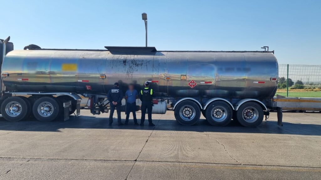 - El 27 de febrero, también en Apaseo El Grande, se aseguró un tractocamión tipo autotanque con 35 mil 370 litros de material asfáltico derivado de hidrocarburo, sin documentación legal.