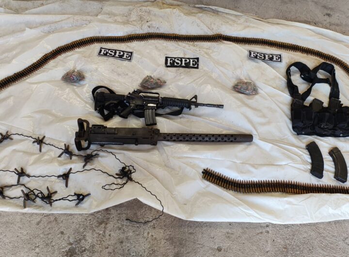 Dos personas, armas de grueso calibre, entre ellas una ametralladora Browning capaz de penetrar blindajes, 500 cartuchos útiles y...