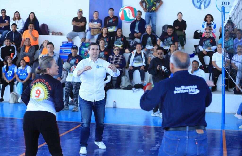El Presidente del Consejo Consultivo del Sistema DIF Estatal, el Dr. Juan Carlos Montesinos Carranza; el Director Genera, José Alfonso Borja Pimentel y autoridades de Apaseo el Alto dieron el saque inicial del torneo regional, donde impulsan una vida activa y de prevención de enfermedades a través del Sistema Integral de Cuidados para las personas adultas mayores.
