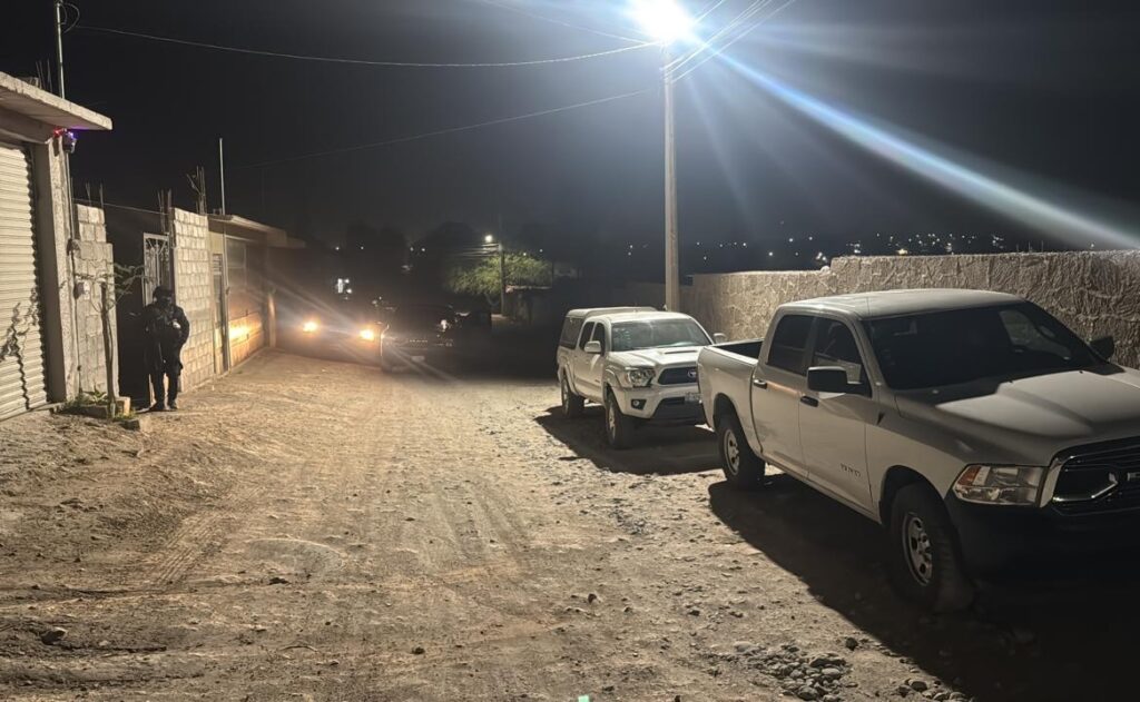 Asimismo, un vehículo tipo Jeep, sin reporte de robo, pero presumiblemente relacionado con hechos de homicidio en el municipio de San Luis de la Paz, y tres cartuchos percutidos calibre .45 mm localizados en el interior del Jeep.