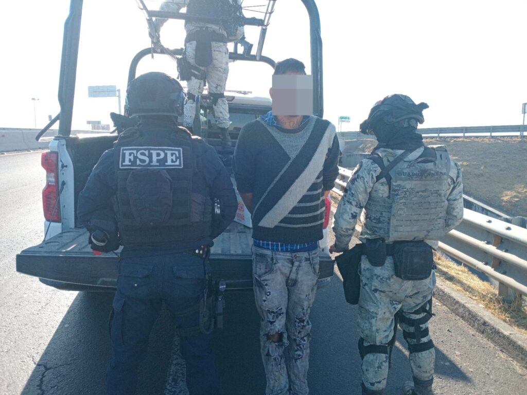 Durante la intervención fue detenido Antonio “N”, de 27 años, con domicilio en el fraccionamiento Las Carretas, quien se encontraba a bordo de un vehículo marca Isuzu. Tras una inspección preventiva, se le aseguró un arma de fuego calibre 9 milímetros, un dispositivo inhibidor de señal y el propio vehículo en el que circulaba.