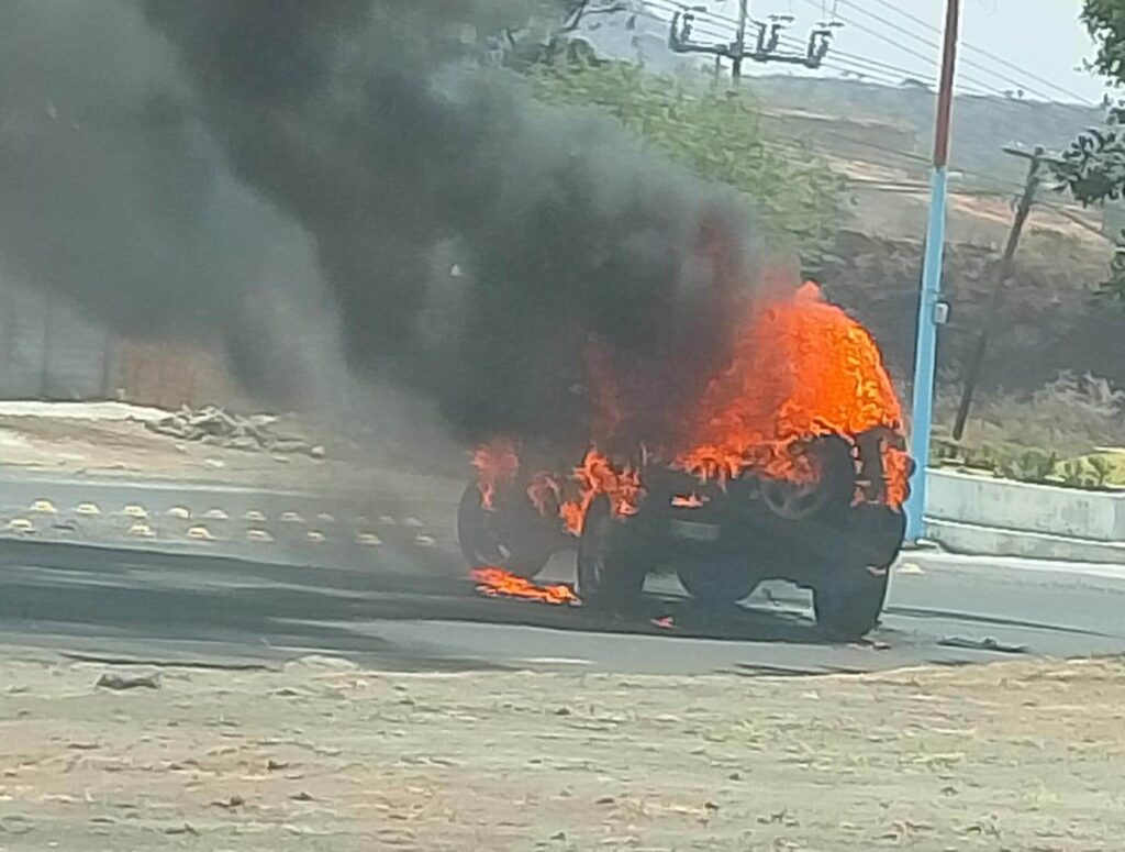 Esta mañana, tras la intervención de autoridades ante un hecho ilícito en el municipio de Yuriria, se registró el incendio de un vehículo en la carretera Valle de Santiago – El Guarapo, a la altura del monumento conocido como La Moneda.