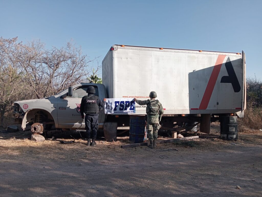 En Pénjamo, en operativo conjunto, se recuperaron 14 vehículos robados en un predio oculto.
