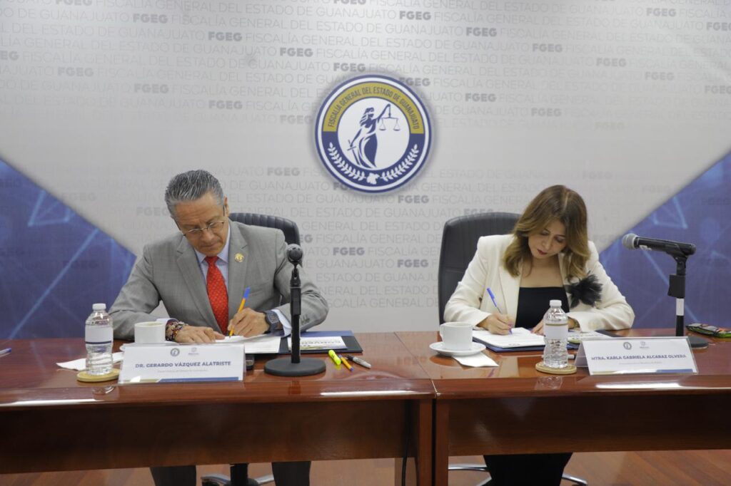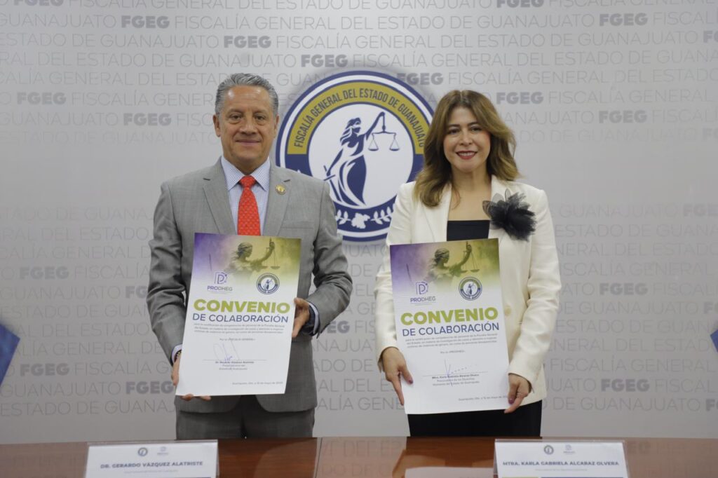 Con el firme compromiso de fortalecer las capacidades institucionales para una procuración de justicia con enfoque de derechos humanos y perspectiva de género, este día se celebró la firma del Convenio de Colaboración entre la Fiscalía General del Estado de Guanajuato y la Procuraduría de los Derechos Humanos del Estado de Guanajuato.