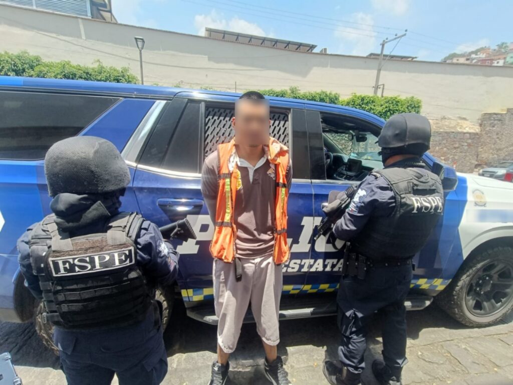 El detenido, identificado como Luis Humberto “N”, de 24 años y residente de la colonia Cerro de San Miguel, intentó huir al notar la presencia de los oficiales y posteriormente mostró una conducta agresiva. Fue alcanzado metros más adelante y se le realizó una inspección preventiva conforme a los protocolos de actuación policial.
