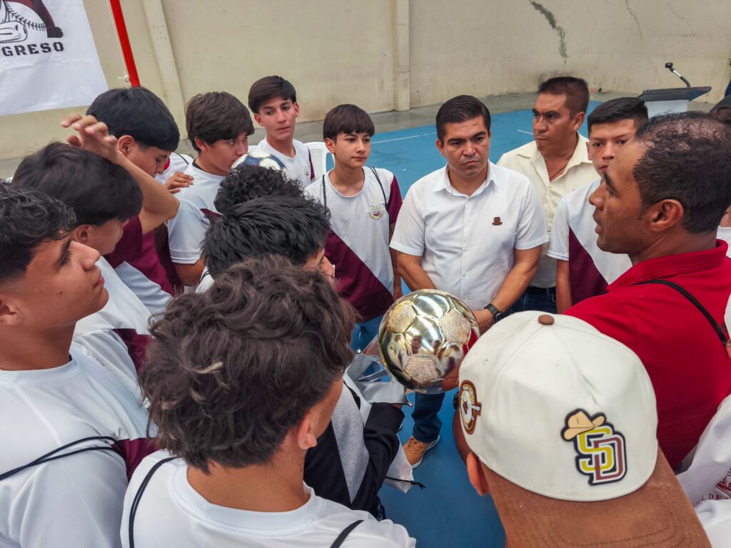 Como parte del compromiso con el desarrollo deportivo en las instituciones educativas, se entregaron uniformes e implementos deportivos a las escuelas que participaron en la etapa regional: