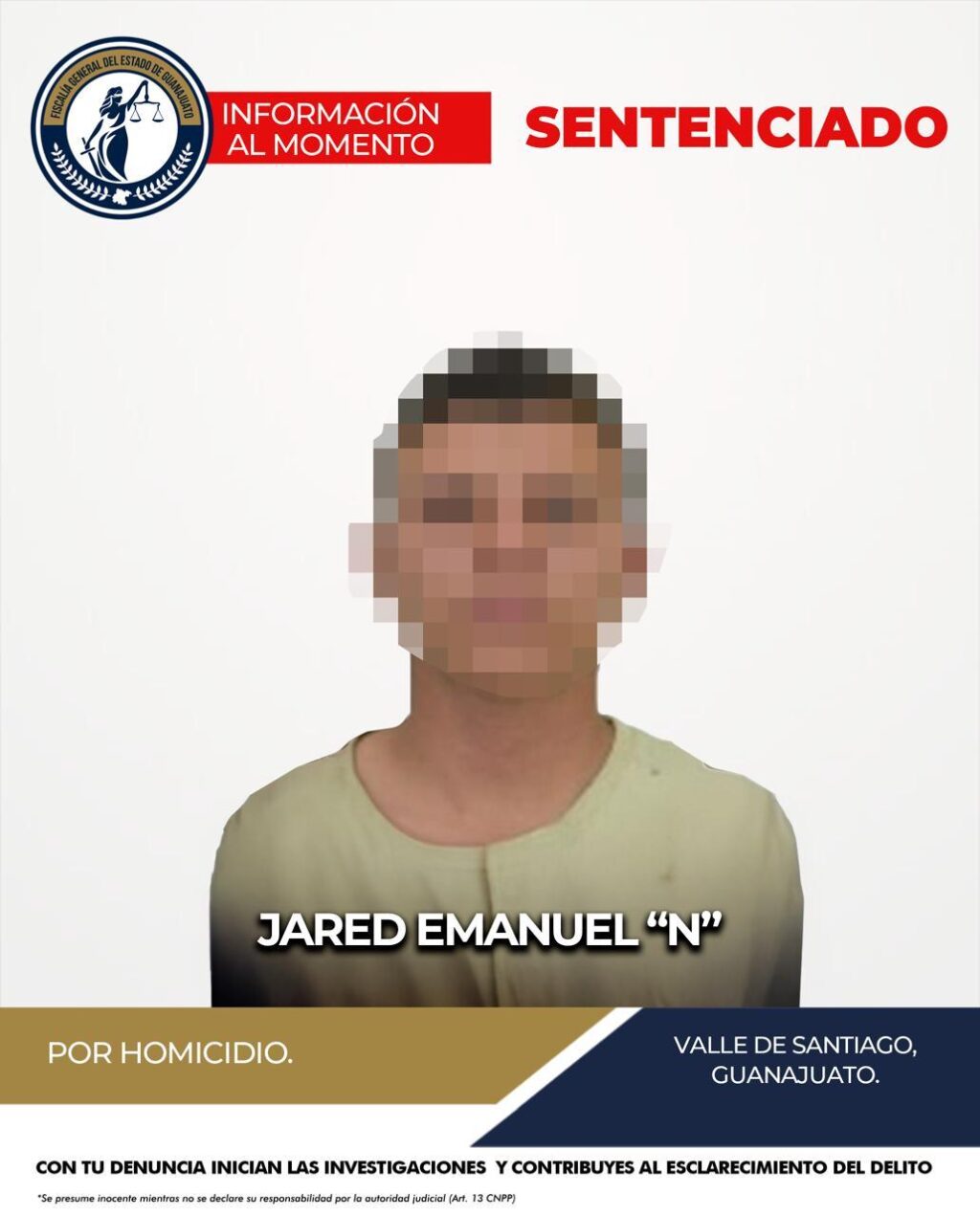 JARED EMANUEL “N” conocido como “El Güero Chen” fue condenado a pasar 25 años de su vida en la cárcel, luego de que la Fiscalía General del Estado investigara el asesinato de una persona en la ciudad de Valle de Santiago y lograra acreditar su responsabilidad en el crimen.