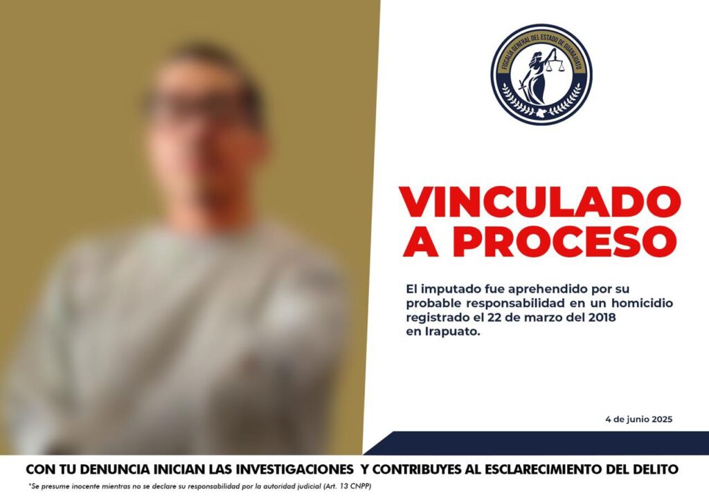 Un agente del Ministerio Público se presentó en el Juzgado de Control del Distrito Judicial de Irapuato, donde se celebró la audiencia por cumplimiento de orden de aprehensión en contra de JOSÉ CHRISTIAN