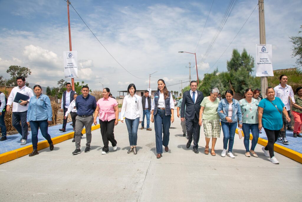 Durante la gira de trabajo la Gobernadora, acompañada por el Presidente Municipal, entregaron la pavimentación de la calle Ignacio Jiménez. Aquí, también se trabajó en la rehabilitación de la red de agua potable, drenaje sanitario, la construcción de alumbrado público y la colocación de señalamiento.