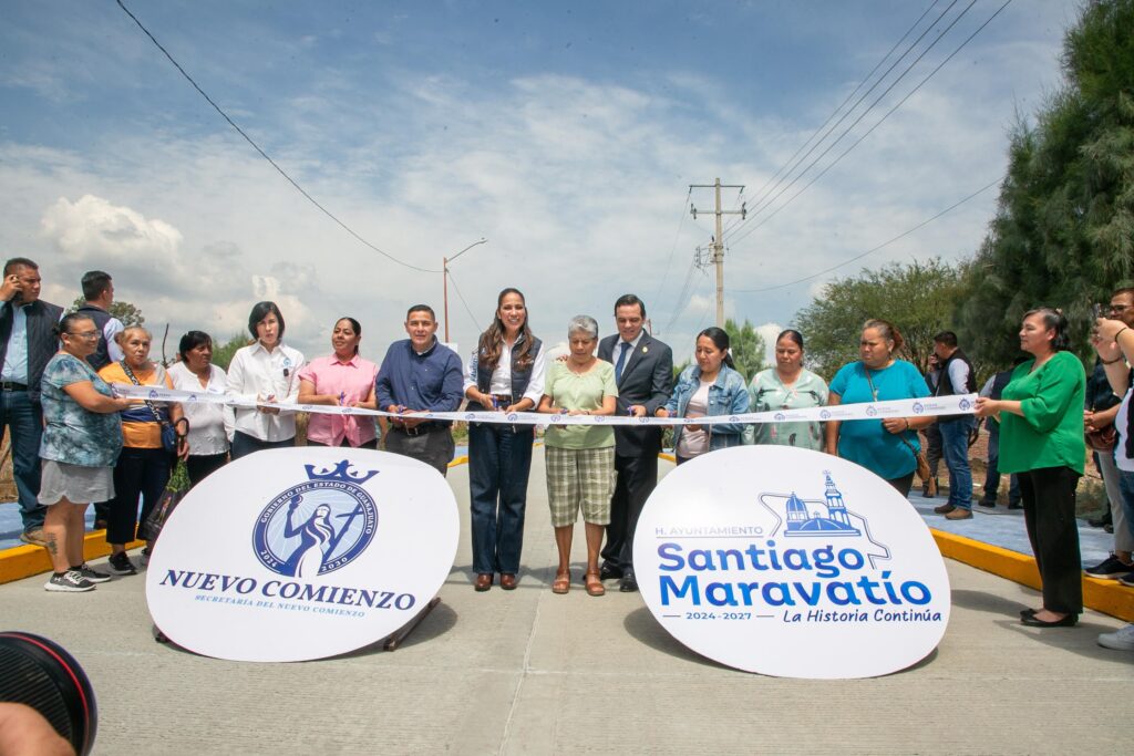 - En Santiago Maravatío la Gobernadora entregó obras de pavimentación y colocó la primera piedra del Centro Nuevo Comienzo.