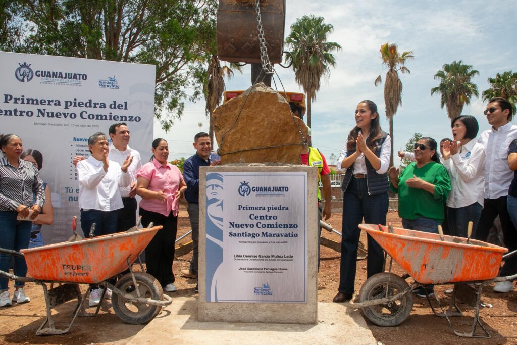 Por último, la Gobernadora colocó la primera piedra de lo que será el Centro Nuevo Comienzo de Santiago Maravatío. Este centro contará con: módulo de acceso, salón de usos múltiples, taller de uso cotidiano, módulo sanitario, cancha de usos múltiples, área verde, ejercitadores, juegos infantiles, barda, cercado perimetral y estacionamiento.